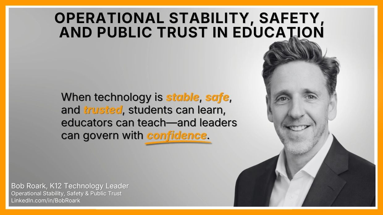 I help K-12 school systems keep instruction running, protect public trust, and make technology boring, reliable, and accountable—especially when resources are constrained and stakes are high.
